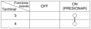 Compruebe la continuidad entre los terminales en condición de cierre parcial como se indica abajo.