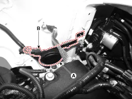 Desmonte la bocina de alarma (A) tras aflojar el perno de montaje y desconectar el conector (B).