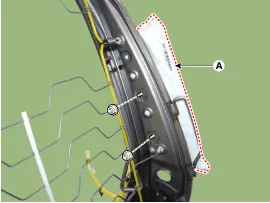 Procedimientos de reparación Extracción 1. Desconecte el terminal negativo (-) de la batería. 2. Desmonte la luz de cortesía (A) con un destornillador plano. 3. Desconecte el conector de la luz de cortesía (A).