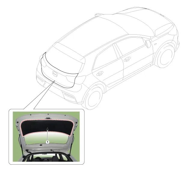 Componentes y localización de los componentes LOCALIZACIÓN DE LOS COMPONENTES 1. Conjunto del portón trasero Procedimientos de reparación Sustitución Utilice siempre guantes para protegerse las manos de posibles daños.