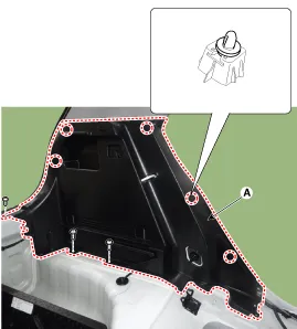 Desmonte el guarnecido lateral del maletero (A) después de aflojar los pernos de montaje.