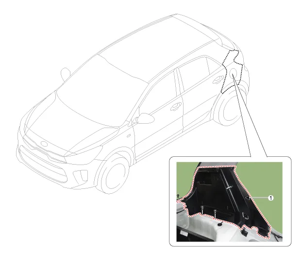 Componentes y localización de los componentes LOCALIZACIÓN DE LOS COMPONENTES 1. Guarnecido de la columna trasera Procedimientos de reparación Sustitución Póngase guantes para proteger sus manos.