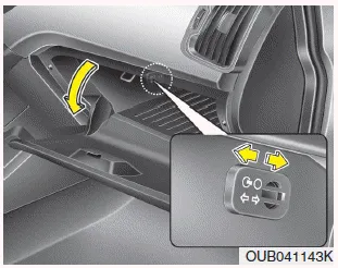 2. Deslice la palanca de apertura/cierre (1) de la ventilación montada en la guantera a la posición de apertura.