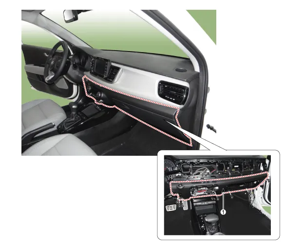 Desmonte el panel central del instrumento combinado. (Consulte "Panel de protección - Panel del tablero de instrumentos") |
