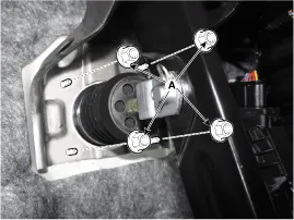Extraiga las tuercas de montaje del pedal del freno (A).