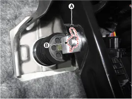 Procedimientos de reparación Extracción 1. Desconecte el terminal negativo (-) de la batería. 2. Desmonte el conjunto de la luz de la matrícula tras presionar el pasador de bloqueo (A). 3.
