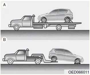 Si es necesario remolcar el vehículo en una emergencia, recomendamos que acuda a un concesionario autorizado de Kia o a un servicio de grúa profesional. Se necesitan seguir unos procedimientos adecuados para levantar y remolcar el vehículo y así evitar daños. Se recomienda usar carritos de transporte para las ruedas o un camión con plataforma.