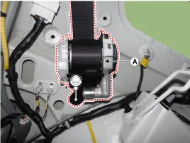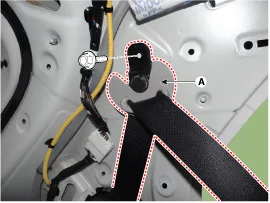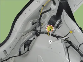 Desmonte el retractor del cinturón de seguridad trasero (A) tras aflojar el perno de montaje.