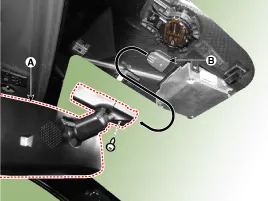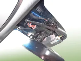 Desmonte el retrovisor (A) tirando del mismo en la dirección indicada por la flecha de abajo.