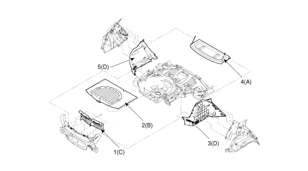 Desmonte el guarnecido del lado del maletero (D) tras aflojar los tornillos de montaje. |