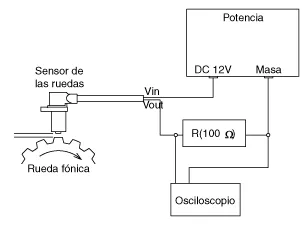 Mida el voltaje de salida entre el terminal del sensor de velocidad de la rueda y la masa de la carrocería.
