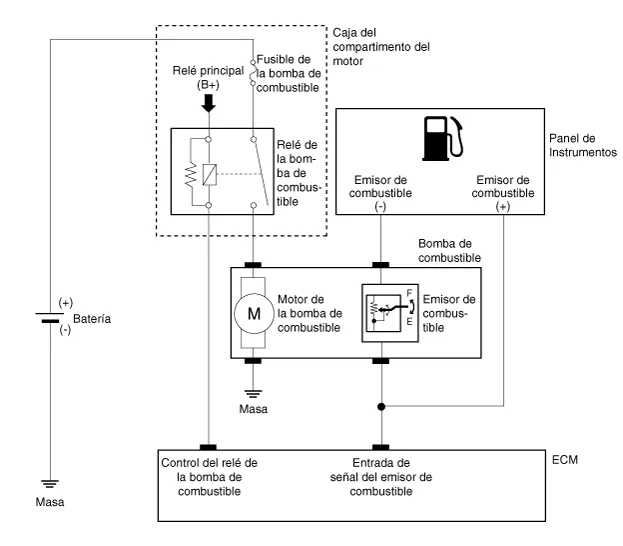 El emisor de combustible está ubicado en el depósito de combustible y mide la cantidad de combustible del depósito de combustible.
