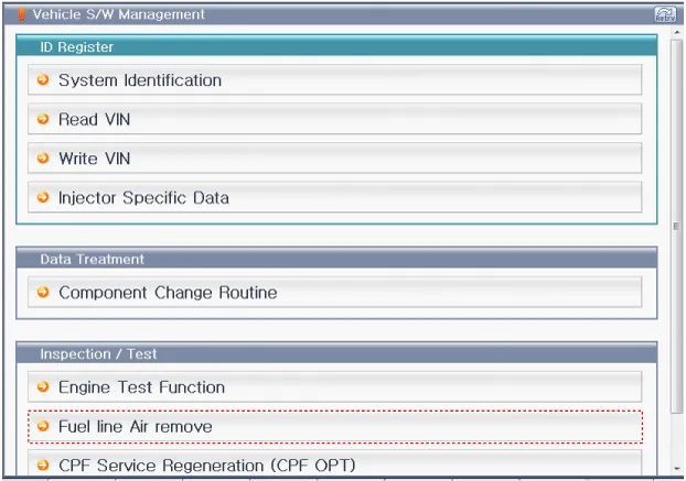 Seleccione "Desmontaje del aire del conductor de combustible".