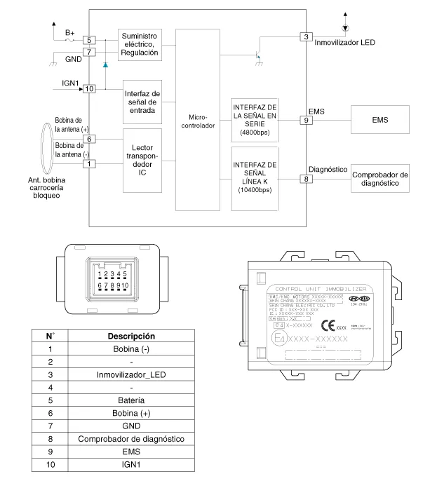 El INMOVILIZADOR no comprueba la validación del transponder ni calcula el algoritmo codificado. Este dispositivo es sólo una interfaz avanzada que convierte el flujo de datos RF del transponder en comunicación serial hacia el PCM(ECM) y viceversa.