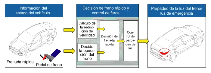 En caso de que el conductor frene rápidamente, la luz de freno o el intermitente parpadean para avisar al vehículo de detrás.