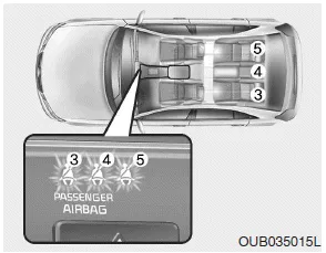 Si el interruptor de encendido está en posición ON (el motor no está funcionando) cuando el cinturón de seguridad del pasajero trasero está desabrochado, el piloto de advertencia correspondiente se iluminará hasta que el cinturón se abroche.