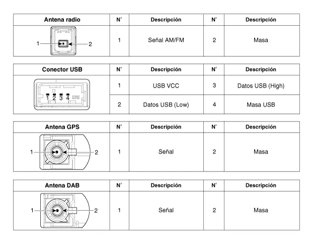 Componentes y localización de los componentes LOCALIZACIÓN DE LOS COMPONENTES 1 . Unidad del cabezal AVN 2. Antena del techo (Radio+GPS+DAB) 3 .
