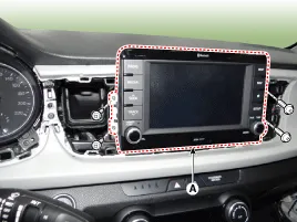 Desmonte la unidad principal AVN (A) tras aflojar los tornillos de montaje.