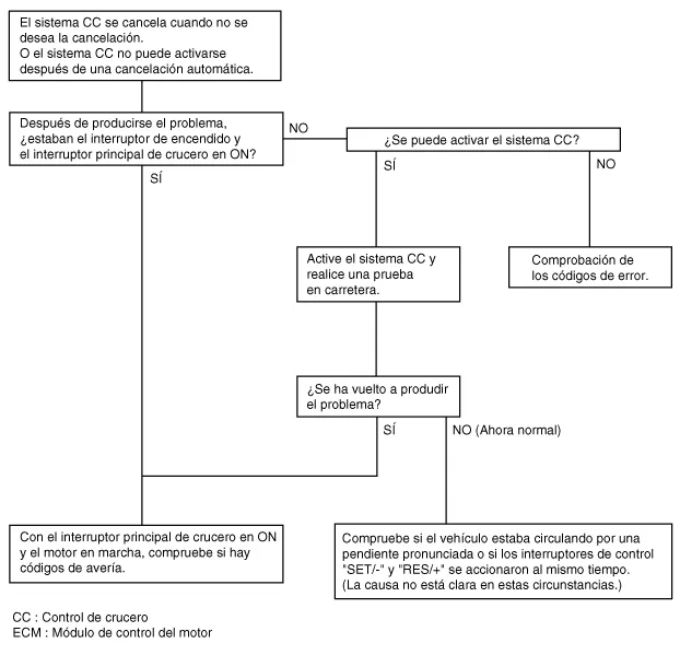 Reparar el cableado o cambiar el interruptor "RES/+" |