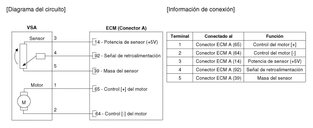 El actuador de la turbulencia variable consiste en un motor CC y un sensor de posición que detecta la posición de la válvula de turbulencia.