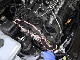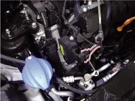 Desconecte el conector del actuador de turbulencia variable (A).