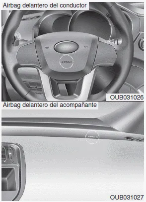 volante y en el panel delantero del acompañante sobre la guantera, indican la presencia