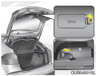 Su vehículo está equipado con una palanca de apertura de emergencia del portón situada en la parte inferior de éste. Cuando se bloquea inintencionadamente el compartimento del maletero, el portón trasero puede abrirse como sigue: