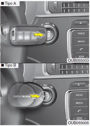 o “ ”o aparecerá el mensaje "La llave no está en el vehículo" en la pantalla