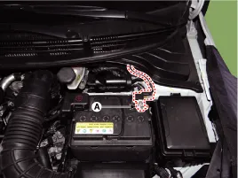 Mueva hacia atrás y hacia delante para comprobar si los terminales de la batería (A) están sueltos o corroídos.Si los terminales están corroídos, límpielos.