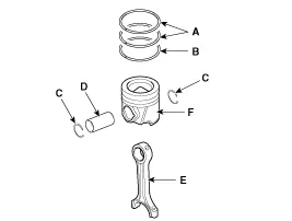 2. Segmento del pistón (N° 2) 3. Anillo de lubricación 4. Pistón 5. Biela |