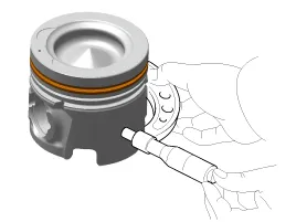 Compruebe la diferencia entre el diámetro exterior del pasador del pistón y el diámetro interior de pie de la biela.