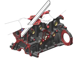 Limpie el bloque de cilindros. Limpie minuciosamente el bloque de cilindros con un cepillo suave y disolvente. |