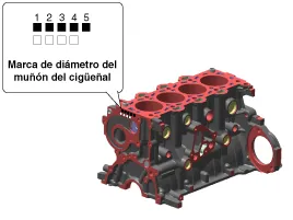 Ubicación de la marca del orificio del muñón del cigüeñal del