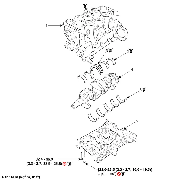 (marcas de tamaño del muñón) para elegir los cojinetes correctos.