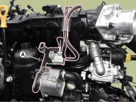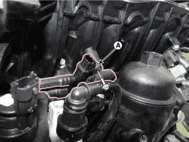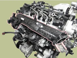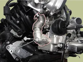 Desmonte el tubo de salida del refrigerador EGR (A).