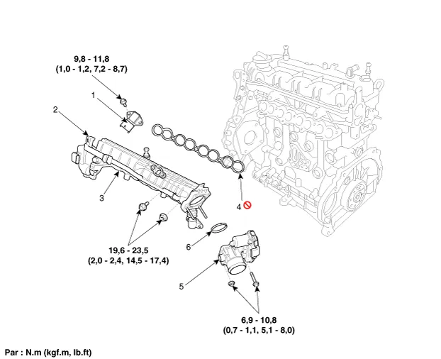 del conducto de salida del refrigerante EGR 5. Junta de la válvula de control de aire (ACV) 6. Válvula de control de aire (ACV) |