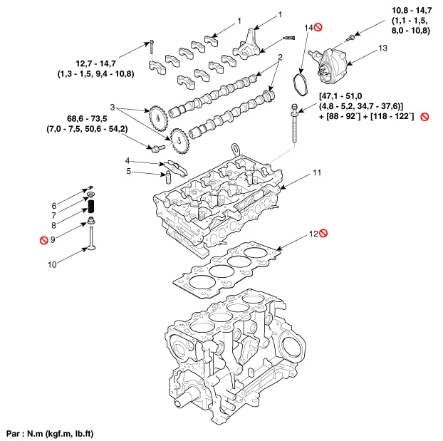 la válvula 10. Válvula 11. Culata 12. Junta de la culata |