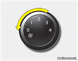 Para parar las toberas de salida de aire, coloque el mando de control de la velocidad del ventilador a la posición '0'.
