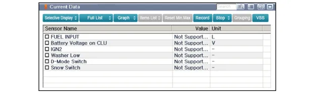 Seleccione el menú 'Current data" para buscar el estado actual de los datos de entrada y salida.
