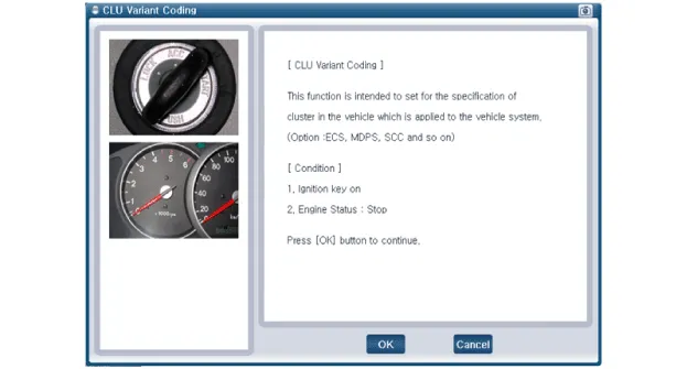 Seleccione 'Modelo de vehículo' y 'Modelo del panel de instrumentos (CLU)' a inspeccionar para comprobar el vehículo con el comprobador.