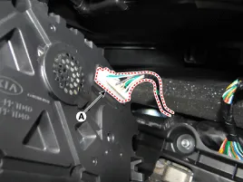 Procedimientos de reparación Extracción 1. Desconecte el terminal negativo (-) de la batería. 2. Abre el portón trasero. 3. Desmonte la tercera luz del freno (A) tras aflojar las tuercas de montaje.