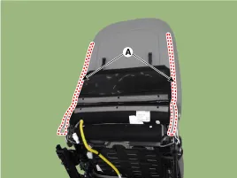 Retire la cubierta del respaldo del asiento delantero (A) del bastidor del respaldo del asiento delantero.