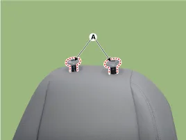 Gire del revés la cubierta del respaldo del asiento delantero. Después tire de las guías del reposacabezas (A) presionando ambos lados de la parte inferior de las guías.
