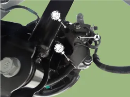 Desmonte el conjunto de la pinza del freno trasero (A).