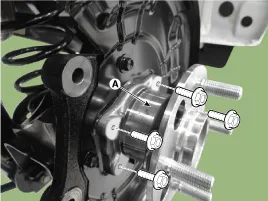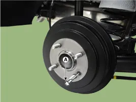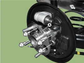 Afloje los pernos y desmonte el buje (A) del eje del brazo de torsión.