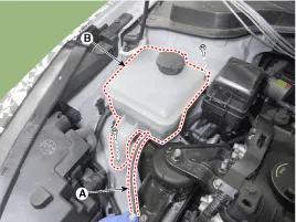 Desconecte la manguera de la reserva (A) y drene el refrigerante del depósito de reserva. |