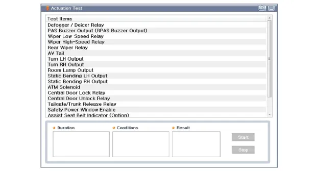 Procedimientos de reparación Inspección 1. Pueden diagnosticarse rápidamente fallos del sistema eléctrico de la carrocería con el sistema de diagnóstico del vehículo (KDS/GDS). El sistema de diagnóstico (KDS/GDS) proporciona la siguiente información.