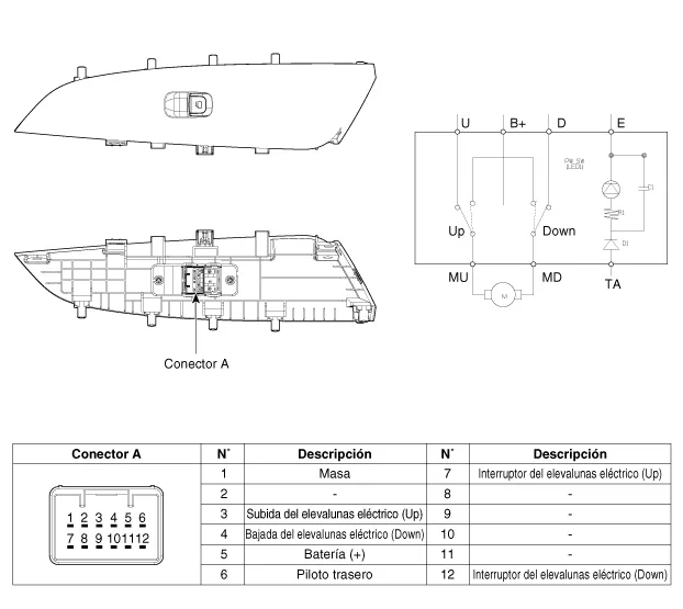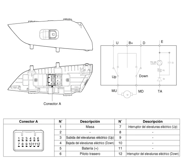 Elevalunas eléctrico principal del conductor (Up/Down) |