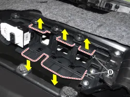 Desmonte el conjunto del interruptor del elevalunas eléctrico (A) extrayendo ambos extremos de los soportes del interruptor (B).