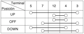 Compruebe si existe continuidad entre los terminales en cada una de las posiciones del interruptor, según la tabla. Si la continuidad no es la normal, cambie el interruptor.